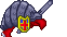 Armor-Doofi appear as turtles wearing iron armor and a sword. They move back and forth while swinging their swords, which gives them a good range, so it's better to take them down from a distance. The green ones are found in Battleships, and are extremely durable. The red ones appear in Stonar. They move a lot faster, but are defeated with only one hit.