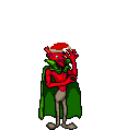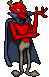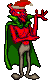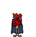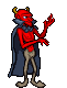 Bilsy appears as a tall, red-skinned humanoid demon, wearing gray pants and a large cape. He won't actually move, waiting on his spot until the player gets into his range to shoot a homing fireball before teleporting away to another spot. The fireball takes two hit points from the player in Normal and three hit points at Hard, and is difficult to dodge, since it follows the player's movement and is relatively fast, detonating when it hits or after a while.