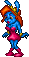She has blue fur and always wears red lipstick. Her hair color is supposedly brown, although her Jazz Jackrabbit 2 sprite has orange hair. She usually wears a pink dress.